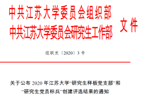 在学校组织开展的2020年yl6776永利集团“研究生样板党支部”和“研究生党员标兵”(简称“研究生党建双创”)评选中,经组织推荐、资格审核、评审公示,我院李幸军同学脱颖而出,被评为“研究生党员标兵”。