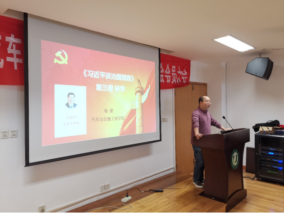 10月28日,在汽车楼311报告厅,学院党委副书记杨建带领全体研究生党员及学生干部进行了《习近平谈治国理政》第三卷研学,本次会议由研究生辅导员陶旺仔陶旺仔主持,80余名学生干部及党员参加。