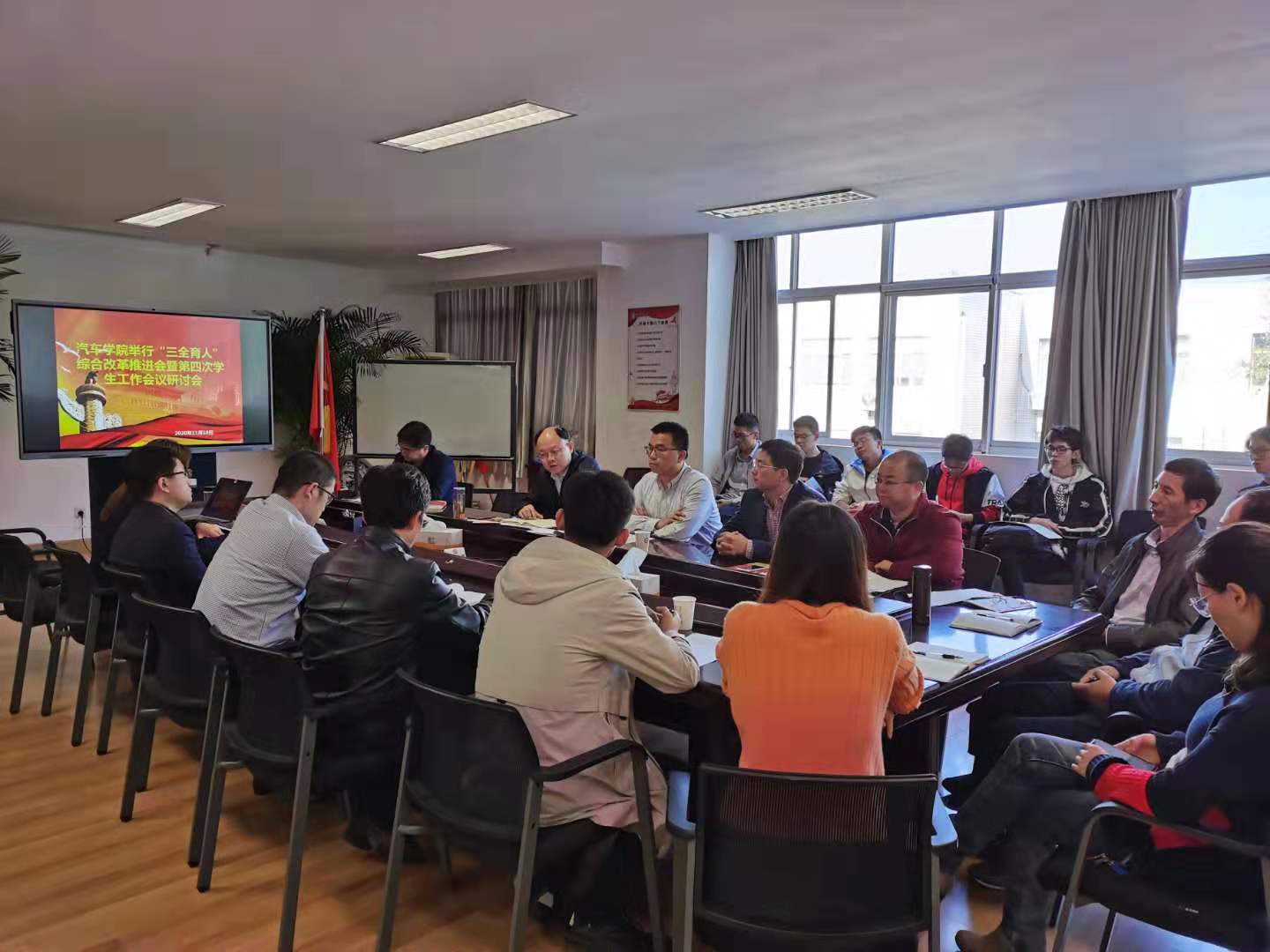 汽车学院召开“‘三全育人’综合改革推进会暨第四次学生工作会议”精神研讨会