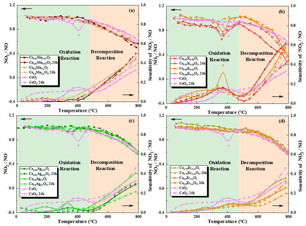 Through the Ce based catalyst metal oxide modification, prof. Wang Pan team of different aging state catalyst smoke low temperature catalytic combustion performance and NOx collaborative oxidation performance in the experimental and theoretical research (Fig. 1), the depth reveals the hydrothermal aging and metal oxide modification of Ce based catalyst in NOx synergy in the basis of soot catalytic combustion evolution mechanism. In addition, Prof. Wang Pan's team systematically analyzed and studied the change of soot catalytic combustion performance and the catalytic combustion reaction path change based on the "zero-dimensional" heat transfer and mass transfer model.