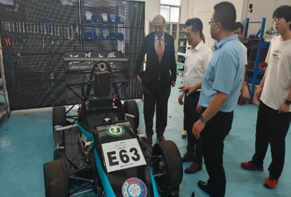 On June 8, Prof. Huajing Maske, Associate Vice President of Wayne State University, Prof. Ali-Abolmaali, Dean of the College of Engineering, and Prof. Ece-Yaprak, Dean of the Faculty of Engineering Technology, and their team of three visited the School of Automotive Engineering to discuss and promote the declaration of Sino-foreign Cooperative Program between the School of Automotive Engineering and the Mechanical Engineering Program of Wayne State University and the "3+2" Master's and PhD Joint Cultivation Program of both parties, Prof. Geng Guoqing, Vice President of the School of Automotive Engineering, Prof. Zou Shijian, Vice Dean of the Department of International Exchanges and Cooperation, and Mr. Tu Wenqiong, teacher of the Department of Vehicle Engineering, joined the meeting.