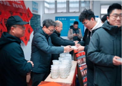 "Serving tangyuan, warmth of the heart in the cold season." Secretary Jiang Yonghua of Qiuzhi College, Secretary Yang Jian of the Automobile College, and Teacher Wang Zhong of the Automobile College presented students with warm and delicious tangyuan. Besides giving out tangyuan, there were also "calligraphers" formed by students at the scene, providing "DIY" services for writing Spring Festival couplets and the Chinese character "Fu" (symbolizing good fortune). Traditional customs and cultural trends sparked a unique blend, truly fulfilling the goal of "nurturing people through culture and education."