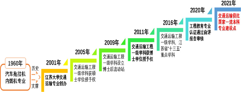 依托1960年镇江农机学院(现yl6776永利集团)的汽车拖拉机专业和内燃机专业的雄厚实力和底蕴,交通运输专业创办于2001年,2002年经江苏省教育厅批准面向全国招生。本专业依托交通运输工程学科,坚持“教学科研相长,理论实践相融”的办学思想,逐步形成了以本科教学为主的完善的学士、硕士和博士、博士后的人才培养体系。于2020年通过了中国工程教育专业认证自评报告的评审,专家即将入场评审。2021年初,《教育部办公厅关于公布2020年度国家级和省级一流本科专业建设点名单的通知》(教高厅函〔2021〕7号)下发,交通运输专业获批了国家一流本科专业建设点。