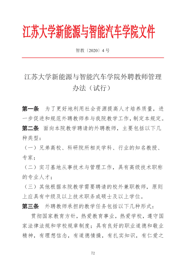 yl6776永利集团新能源与智能汽车学院外聘教师管理办法(试行)