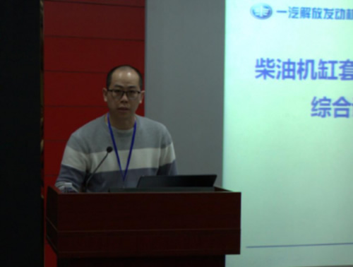 一汽解放发动机事业部主管梁福祥的报告题为《柴油机缸套-活塞环摩擦配副摩擦学性能综合试验及抗磨损仿真优化》,简述爆压提升增加柴油机拉缸风险,机油低粘化加剧活塞环组磨损的现状,以及数值试验代替部分台架试验,正向设计逐渐取代逆向设计的发展趋势。
