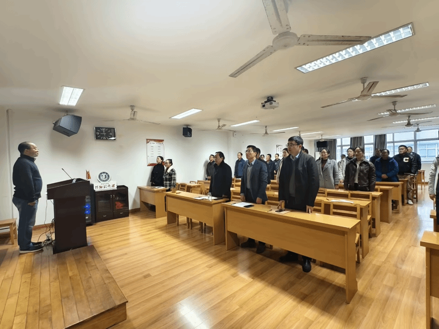 大会在庄严的国歌声中拉开了序幕。首先进行第一项议程,院长汪若尘作年度工作报告。他从党建引领、教学改革、科研突破等方面总结了学院2024年工作情况,并指出学院新的一年工作目标与要求。
