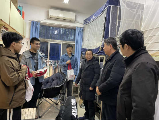 随后,各位领导和老师赴迎松书院社区老生楼后楼看望考研学生们,他们一边发放礼包,一边叮嘱同学们在考研冲刺的最后阶段要注意防护、保重身体,同时鼓励同学们全力以赴、稳定心态,争取一战成硕。收到考研慰问大礼包后,同学备受鼓舞,纷纷表示一定会拿出最好的状态冲刺,不辜负学院的殷切期待,用优异的成绩回报学校。