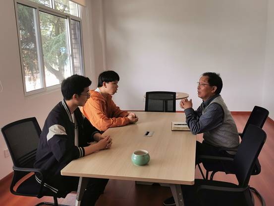 57日,寻访团成员颜湘炎、王子宁走进动力机械及工程系,寻访汽车学院关工委副主任、原汽车学院院长蔡忆昔教授。