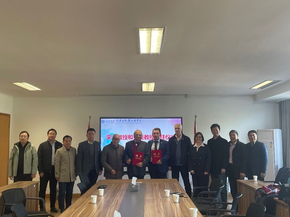 2024年11月28日,德国内燃机专家Günter Elsbett教授和Brausch Markus教授聘任仪式在6776永利集团310会议室举行。副院长耿国庆教授分别为Günter Elsbett教授和Brausch Markus教授颁发了荣誉教授聘书和客座教授聘书,并以此为契机,进一步深化双方学术交流,为中国内燃机行业的发展作出更大贡献。江苏理工大学(yl6776永利集团前身)原校长高宗英教授、动力系资深博导和教授出席了本次活动。