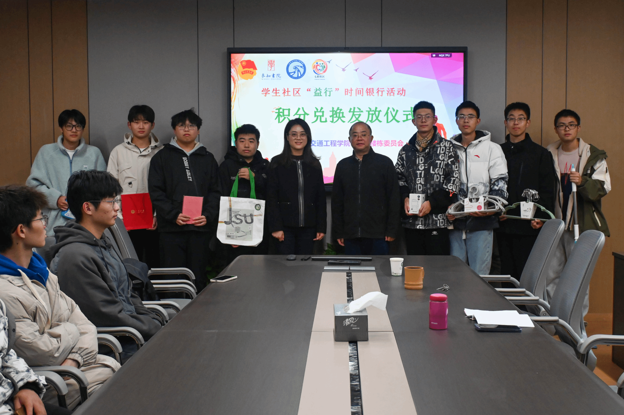 11月19日,汽车学院“益行”时间银行积分兑换发放仪式暨大学生社区安全文明讲座在303报告厅举行。学工处副处长张芬、汽车学院党委副书记杨建、自治楼栋委员会丰德、杨扬及志愿者代表共同参与活动。