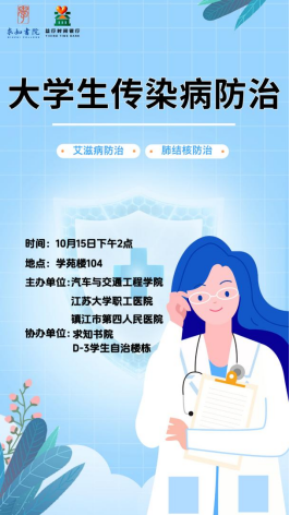 汽车学院联合yl6776永利集团职工医院、镇江四院、求知书院开展“大学生传染病防治”讲座