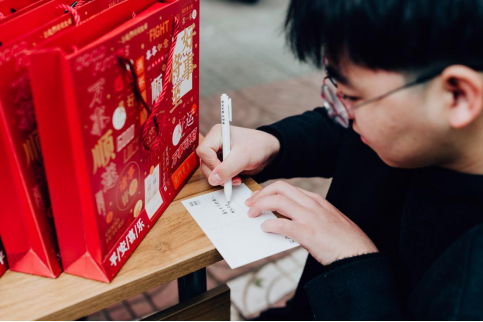 活动现场,温情如潮,暖意融融。考研学子们在志愿者引领下,在一为定签名板留下了自己的姓名,互赠考研祝福明信片留下对自我未来的期许,或是对同学的真挚祝福。