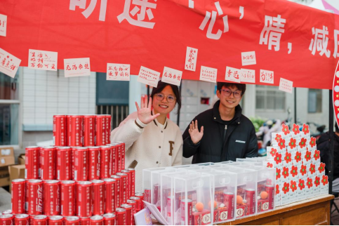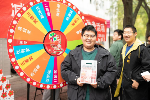 随后,在志愿者的引领下,同学们步入抽奖转盘区进行抽奖转盘设有一等奖、二等奖、三等奖、优秀奖及幸运奖,对应着寓意深远的各式礼品:考研加油包内含象征事事如意的柿子钥匙扣、寓意金榜题名的笔记本,以及专为他们定制的考研可乐更有寓意未来可期的笔记本套盒、印有元气满满,好运连连的定制可乐,以及点缀着小红花图案的养生花茶礼盒,每一件礼品都凝聚着对考研学子深深的祝福与鼓励,助力他们驱散焦虑,轻松减压,以更加平和的心态迎接挑战。