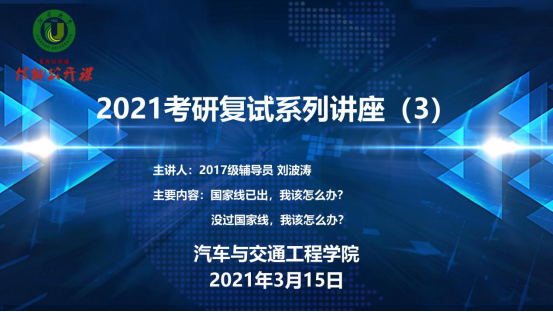 汽车学院举办2021考研复试指导系列讲座(三)——国家线已出,我该怎么办?