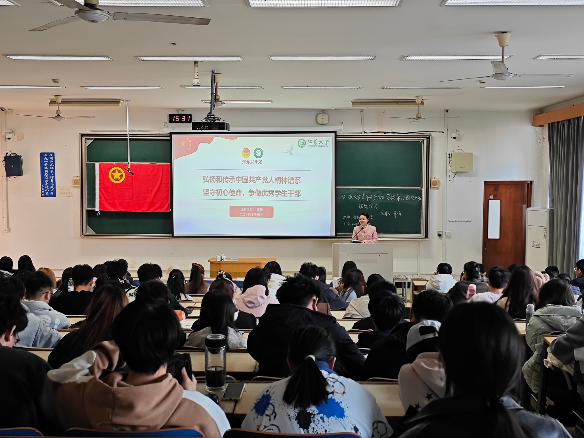 11月30日,由校团委主办,汽车学院、材料学院、艺术学院,药学院,梦溪学院,汽车工程研究院,食生学院承办的第79期团校第2讲在讲堂群302准时开讲,本次团课由材料学院团委薛梅老师担任主讲嘉宾,来自7个学院的百余名团干部参加了此次团课。