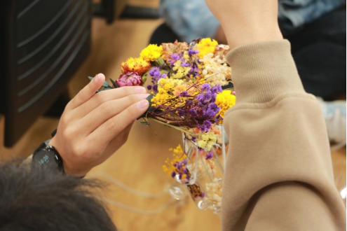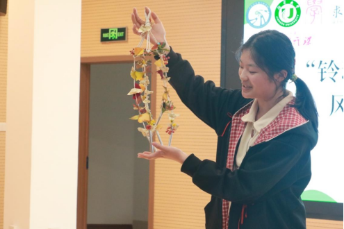在创意DIY环节,一幅幅匠心独运的风铃作品跃然眼前:有的团队以废弃卡纸为画布,巧手裁剪拼接,化作翩翩起舞的彩蝶风铃,于微风轻拂间绽放出绚烂的环保之花;有的则巧妙融入干花元素,勾勒出一幅幅秋日独有的风情画卷;更有团队慧眼识珠,将废旧玻璃瓶赋予新生,通过精细的组合与打磨,打造出既具艺术韵味又显精致格调的风铃,每当微风轻拂,它们便吟唱起一曲曲环保与创意共鸣的悠扬乐章。