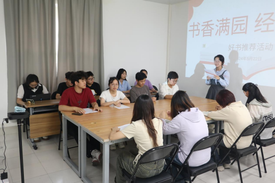 在图书分享环节,同学们依次交流读书心得并选择精彩的片段进行诵读。大家不仅畅谈书籍内容,还结合自己的生活经历,对书籍主旨进行了深入分析,在充实自我、增长才干的同时,也收获了许多志同道合的书友。
