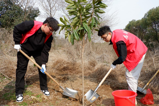 经过两个多小时的辛勤劳作,一棵棵挂着“认养牌”树苗昂然挺立,在和煦的春风中焕发出盎然生机。绿色环保,青年先行。汽车学院将设计开展更加丰富多彩的生态环保宣传实践活动,引导广大青年从自身做起、从小事做起,为谱写中国式现代化江苏新实践贡献青春智慧和力量。