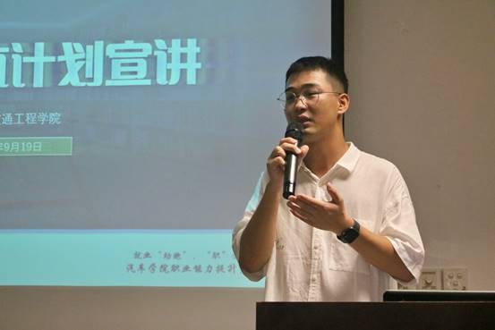 为深化实施团中央“共青团促进大学生就业行动”,引导广大青年学生把握就业方向,明确就业选择,提高就业能力,树立正确的就业观和择业观,9月19日,汽车学院在311报告厅举办“就业‘助跑’ ‘职’通‘V’来”就业引航计划宣讲。汽车学院2023届校友、中国科学院工程热物理研究所博士方钰受邀成为主讲人。