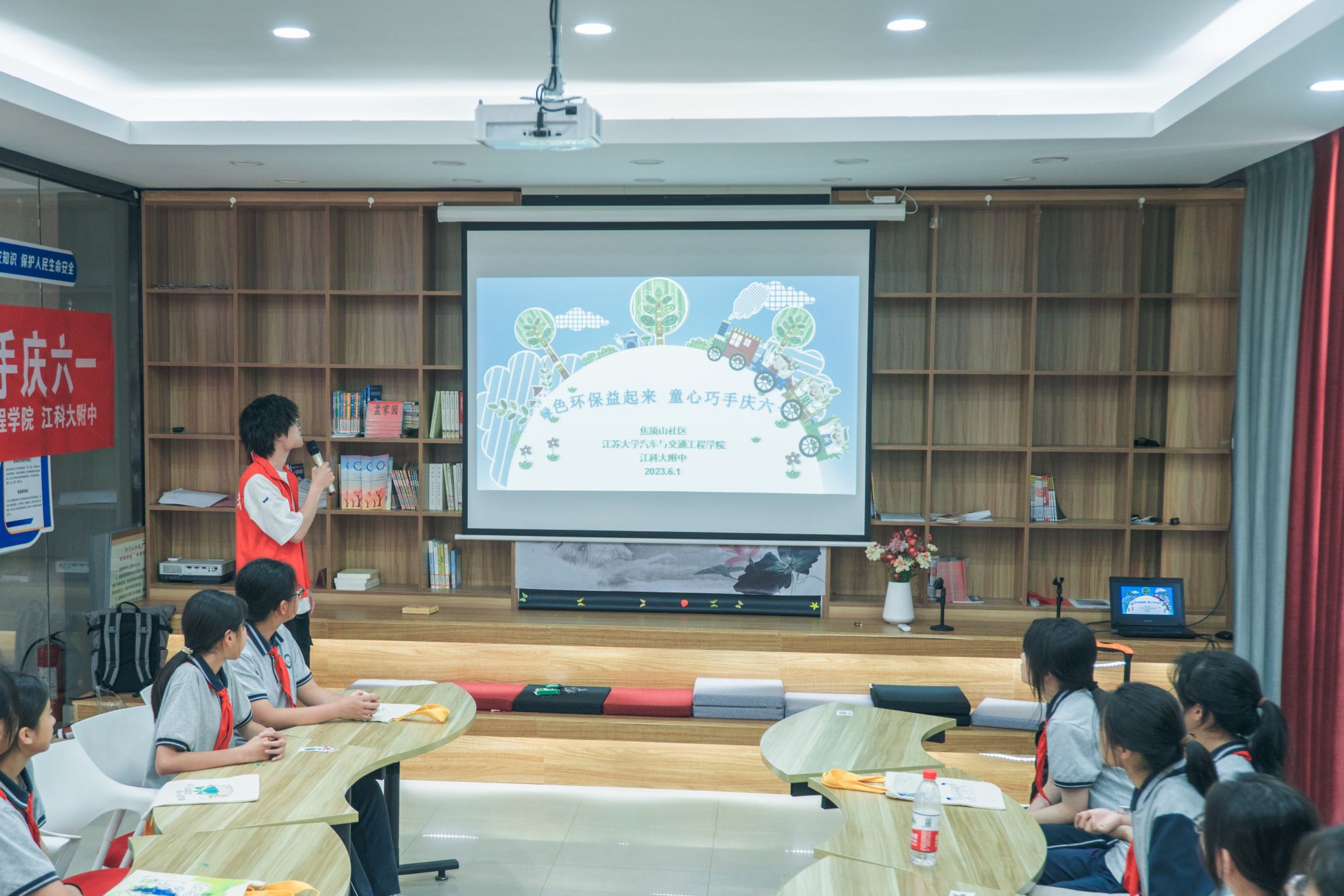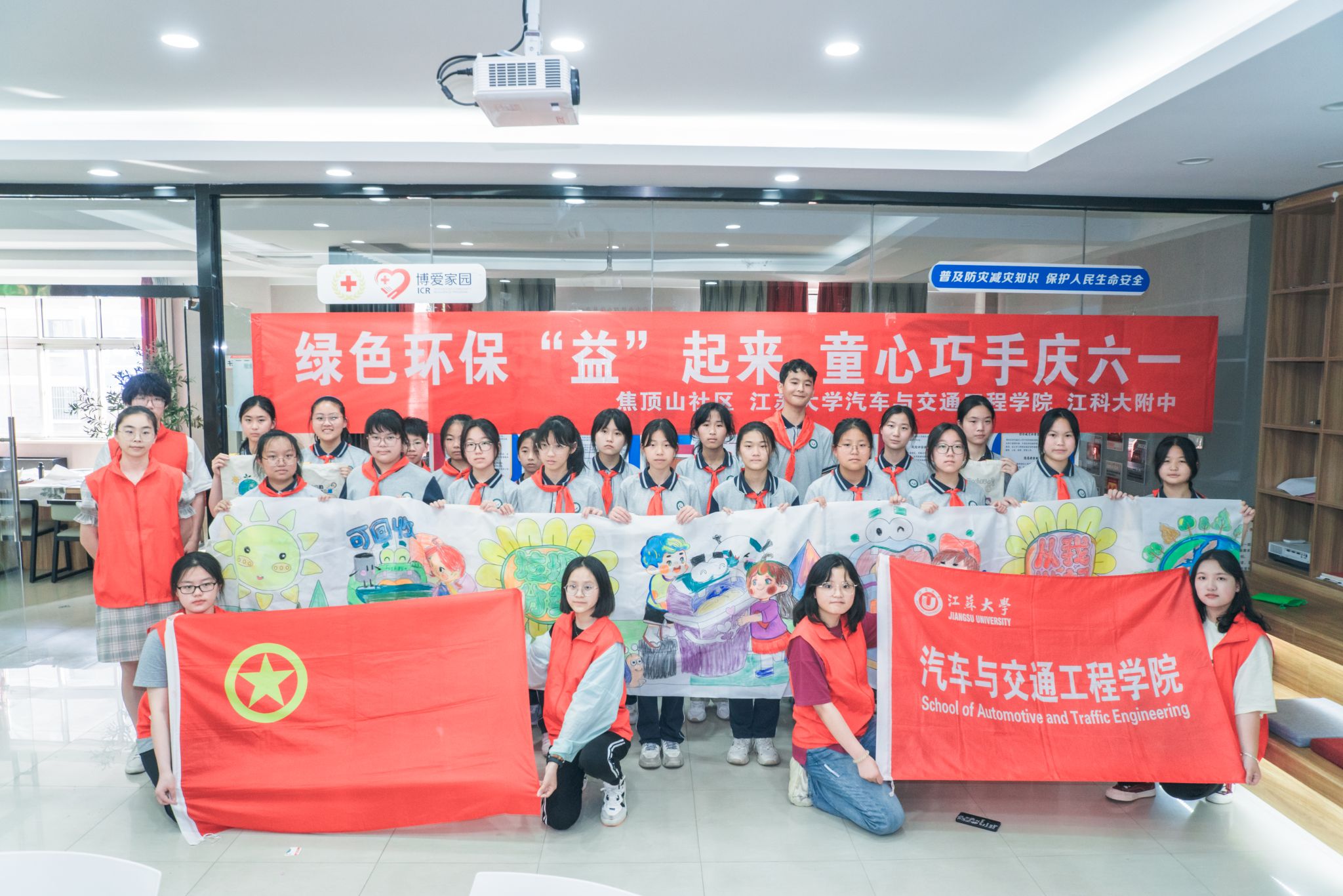 6月1日,汽车学院联合焦顶山社区和江科大附中,在焦顶山社区党群服务中心开展“绿色环保‘益’起来,童心巧手庆六一”实践活动,本次活动也是yl6776永利集团劳动月系列活动之一。
