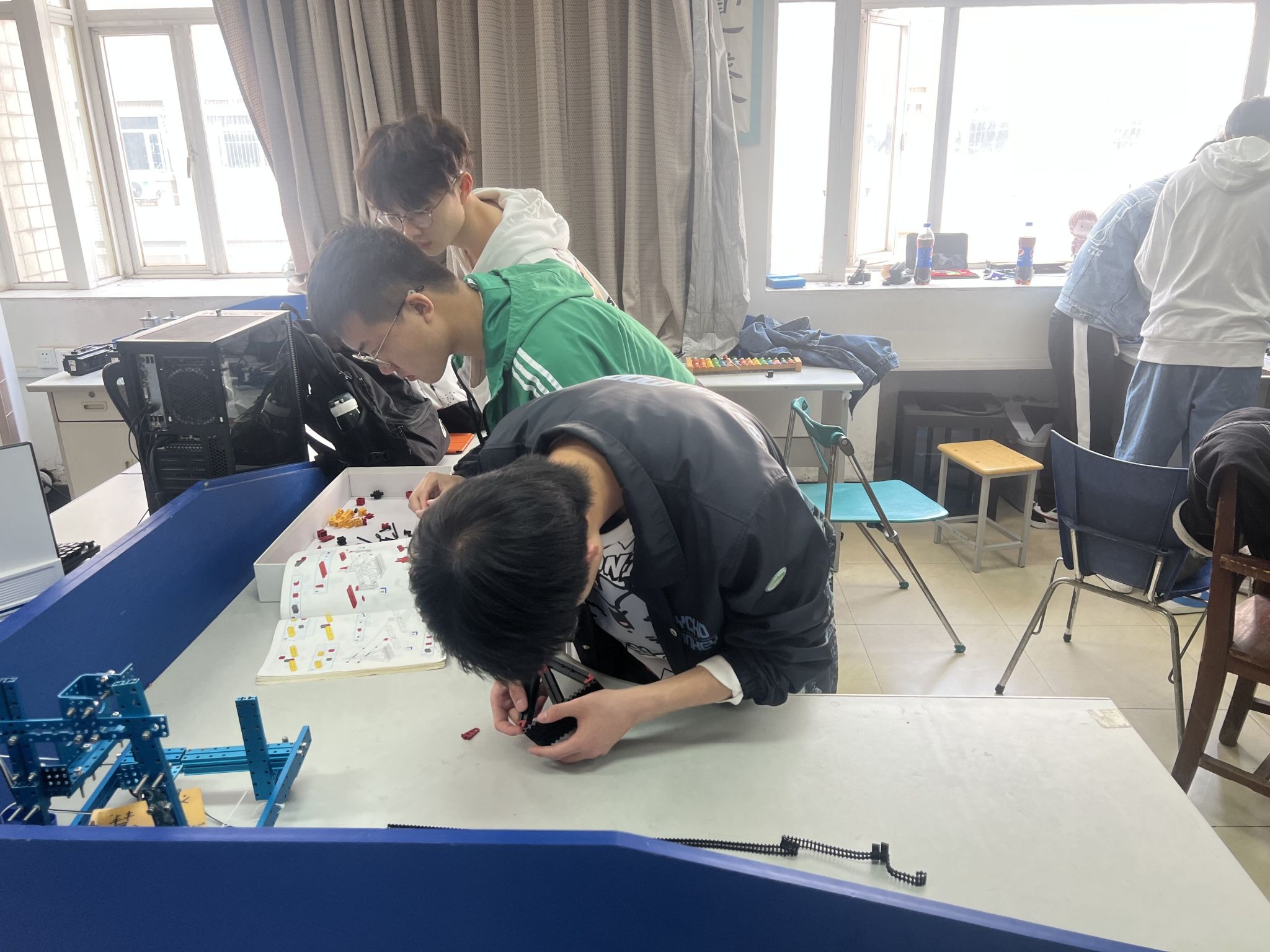 本次比赛分为按图索骥(完成指导书上模型的拼装)和自主创新(自行设计并拼装)两个环节。第一个环节的比赛,最快的一组仅花费不到二十分钟就完成拼装,第二个环节各个小组认真思考,巧妙构思,做出了属于自己小组的创新成果。比赛现场呈现出来的都是创意十足,制作精巧,凝聚了心血和智慧的力作,作品不落窠臼,体现了求新,求变的创新精神。