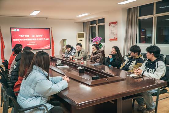 为深入学习宣传贯彻党的二十大精神,学习优秀志愿服务项目经验,在新征程上锐意进取、主动作为、埋头苦干,弘扬“奉献、友爱、互助、进步”的志愿服务精神,进一步增强青年志愿者志愿服务意识,2月20日,汽车学院在学院310会议室召开“携手共建 ‘益’起行动”志愿服务交流会暨新学期学生社团工作会议。雯心草公益服务中心负责人徐颖、吕琳,汽车学院团委副书记陈佳楠,汽车学院团学组织负责志愿服务工作的社团负责人和学生骨干参加了此次交流会。