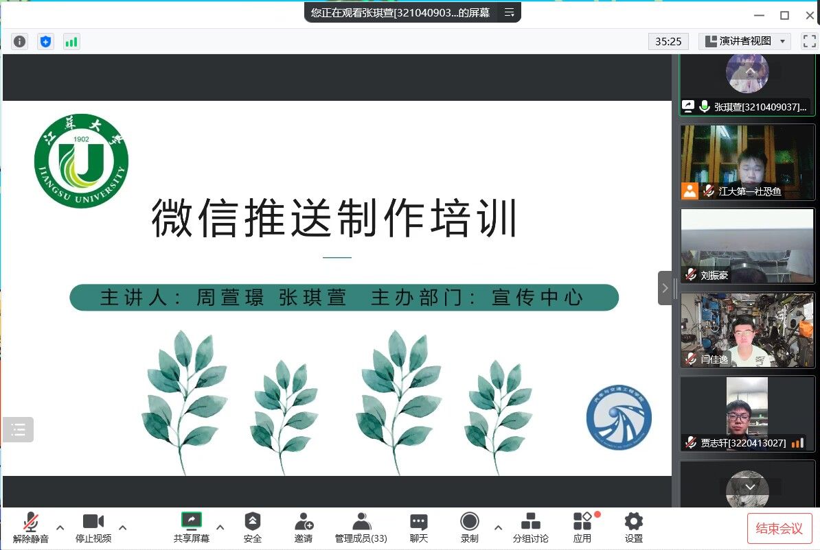 本次活动共分为线上培训和评审答辩两个环节。10月1日,汽车学院线上举办微信推文制作培训会,院团委宣传中心部门负责人张琪萱和周萱璟受邀成为主讲人。首先,周萱璟对“江大汽车”微信公众平台作了简要介绍,并讲述了微信公众平台的后台管理模式。张琪萱围绕图文编辑及排版、微信推文制作注意事项、辅助内容推荐等内容详细讲解了微信推文制作的基本要点。她指出,微信推文编辑的总体风格应是简约、清爽、大气,而图片是推文的灵魂所在,要善用修图工具,注意图片的比例和质量。对于135编辑器和秀米编辑器的使用,她提出了三点要求:一是熟练使用快捷键导入文档;二是注意间距和字号大小,使文章富有呼吸感;三是选择样式点缀时,应少而精,且风格、色调统一协调,避免喧宾夺主。此外,她还强调在校对文字和格式时应仔细且耐心,避免错误。最后,她希望大家能够主动学习优质公众号里的排版和文字写作技巧,培养良好的审美意识,在实践的基础上进行创新。