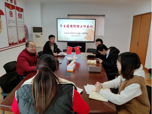 为坚决贯彻落实国家和学校关于新冠疫情防控的工作任务和最新要求,保障学生身体健康,确保寒假前后学生工作有序进行,1月7日,汽车学院在汽车楼301会议室召开了学生寒假疫情防控工作会议,会议由学院党委副书记、副院长杨建同志主持,全体专职辅导员参加会议。