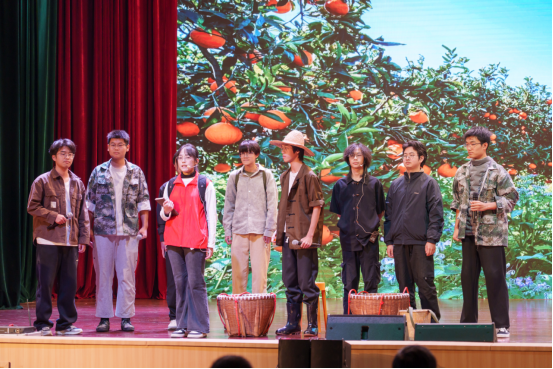 汽车学院参赛的舞台剧《追光的青春》以深情动人的旁白串联全篇,搭配生动鲜活的舞台画面,将新时代青年的理想追求与责任担当娓娓道来。剧中,青年学子们将个人理想融入国家发展大局,或扎根偏远山野,带领当地百姓发展产业、增收致富;或躬身基层实践,用专业所长服务万家灯火,一个个温暖而有力的场景,不仅诠释了青年与国家同频共振的深刻内涵,更引发了现场观众的强烈情感共鸣,赢得阵阵掌声。