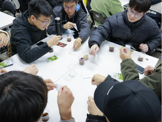 知识竞答环节气氛活跃,各小组踊跃抢答,将现场推向高潮。在品茗猜茶体验中,大家通过观察、品鉴茉莉花茶、红茶和乌龙茶,进一步了解了不同茶类的特点。最后的DIY茶包制作环节,同学们利用玫瑰、菊花、柠檬片等材料,亲手调配个性茶包,为活动留下独特纪念。